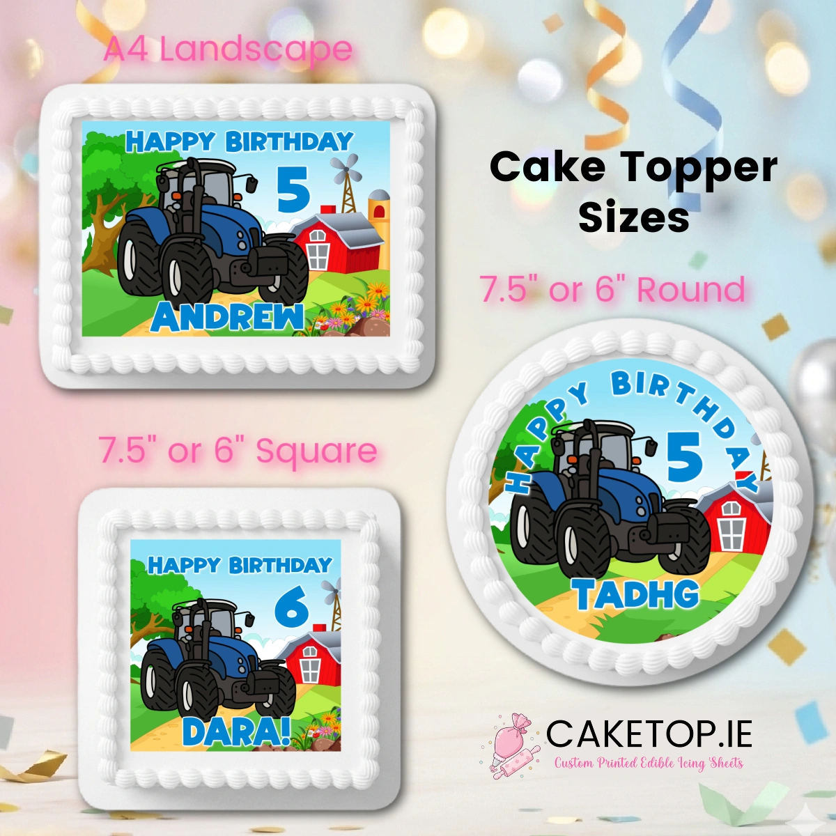 Tractor Edible Cake TopperBlue Tractor Edible Cake Topper
