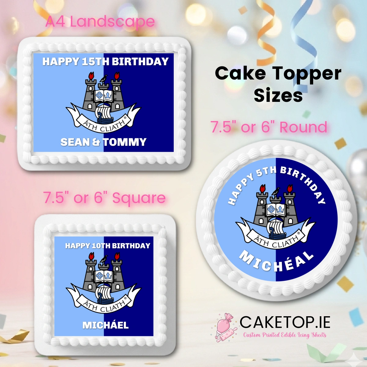 Caketop.ie does not claim ownership of licensed images. Designs are for one-time personal use only. We do not provide copyright releases and are not responsible for printing issues between you and your bakery or printer.