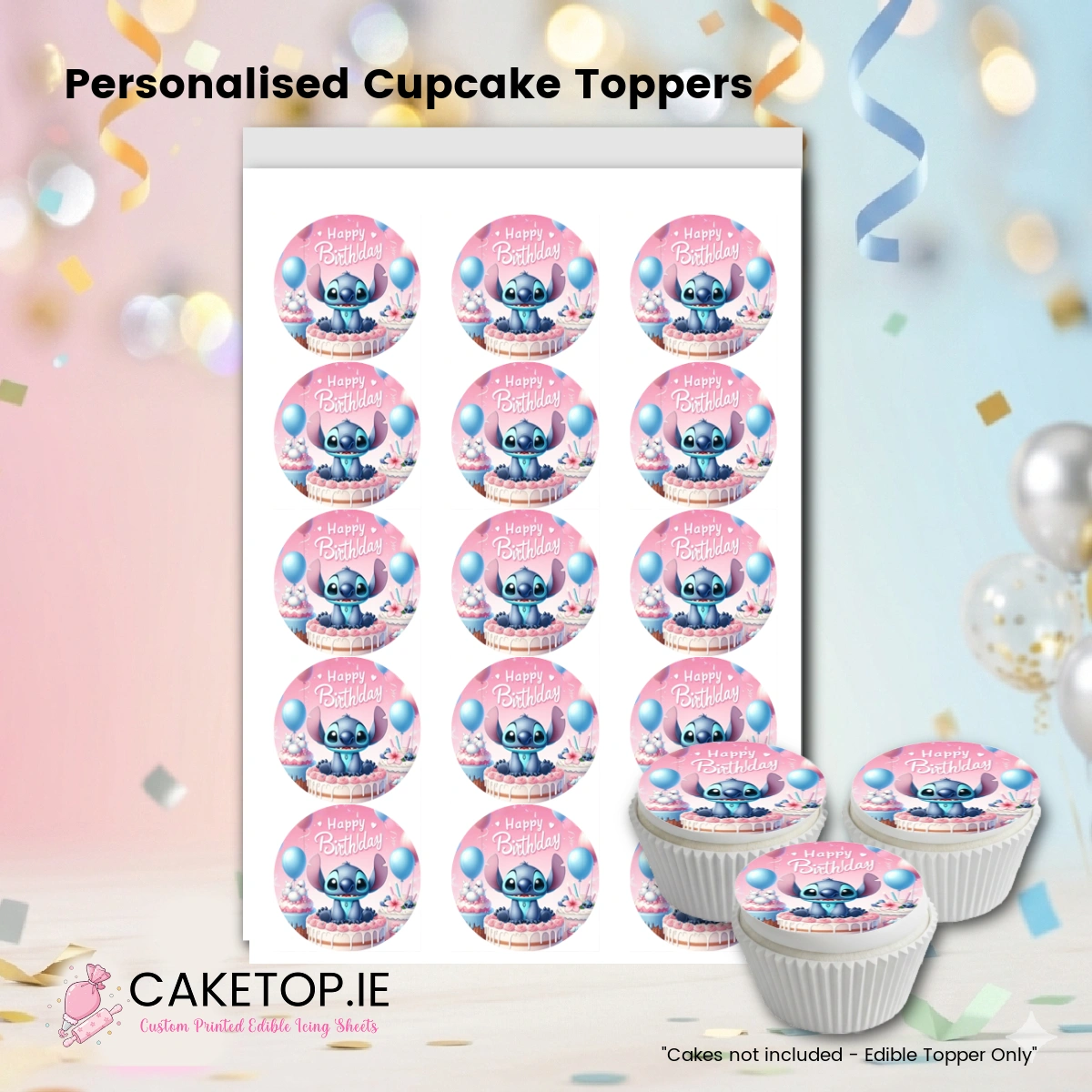 High Quality Pre-Designed EASY PEEL Edible Cake Topper. Precut and ready to place on your Cupcakes!