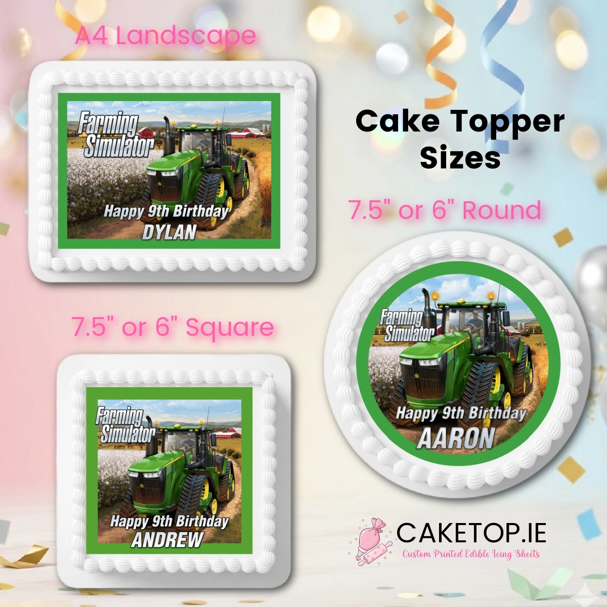 Caketop.ie does not claim ownership of licensed images. Designs are for one-time personal use only. We do not provide copyright releases and are not responsible for printing issues between you and your bakery or printer.